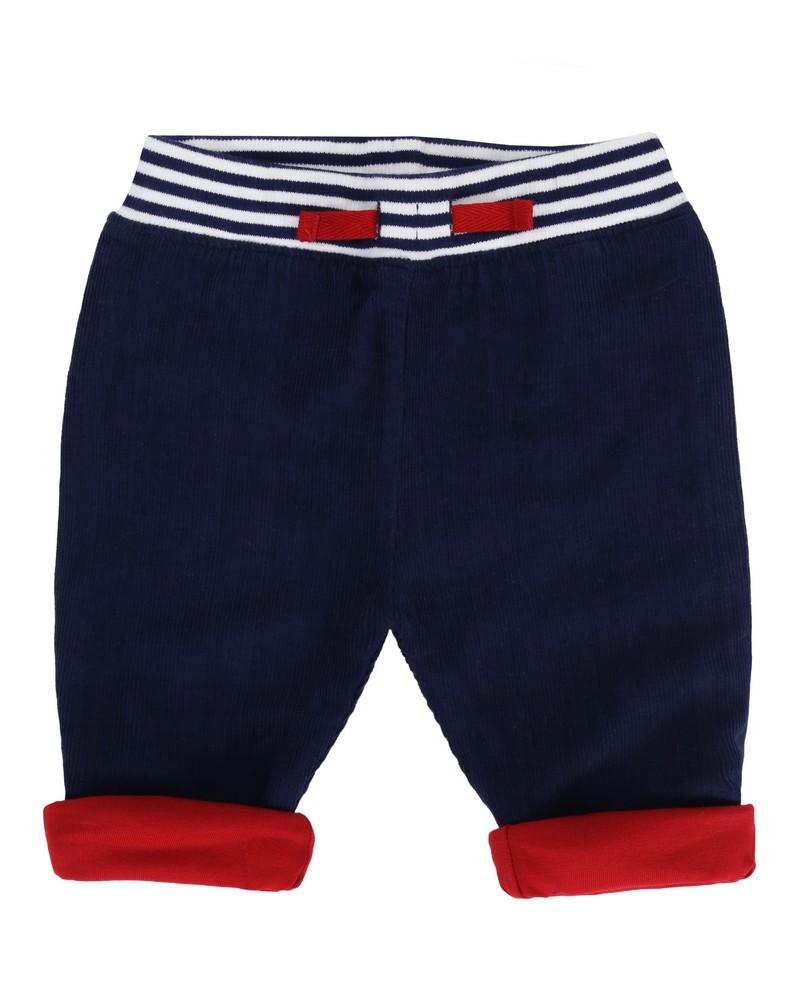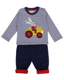 New character Farm Bunny features as an applique on this boys set. Made from premium 100% cotton jersey fabric, the top looks great worn back with the cord woven trousers. The navy trousers are lined with soft red jersey fabric for extra comfort. Soft elastication to waist, popper fastening to neck.