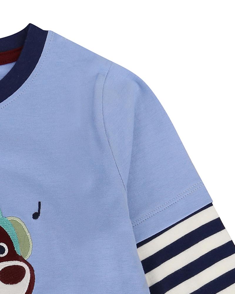 This jersey top has a mock layered effect to sleeves, a great option the whole season through. The bear applique to front will delight little ones.