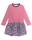 Our Fabric Mix Dress combines classic pink stripe with our vintage ditsy print for a unique look. The jersey top section attaches to the woven skirt with soft fullness for a pretty silhouette.