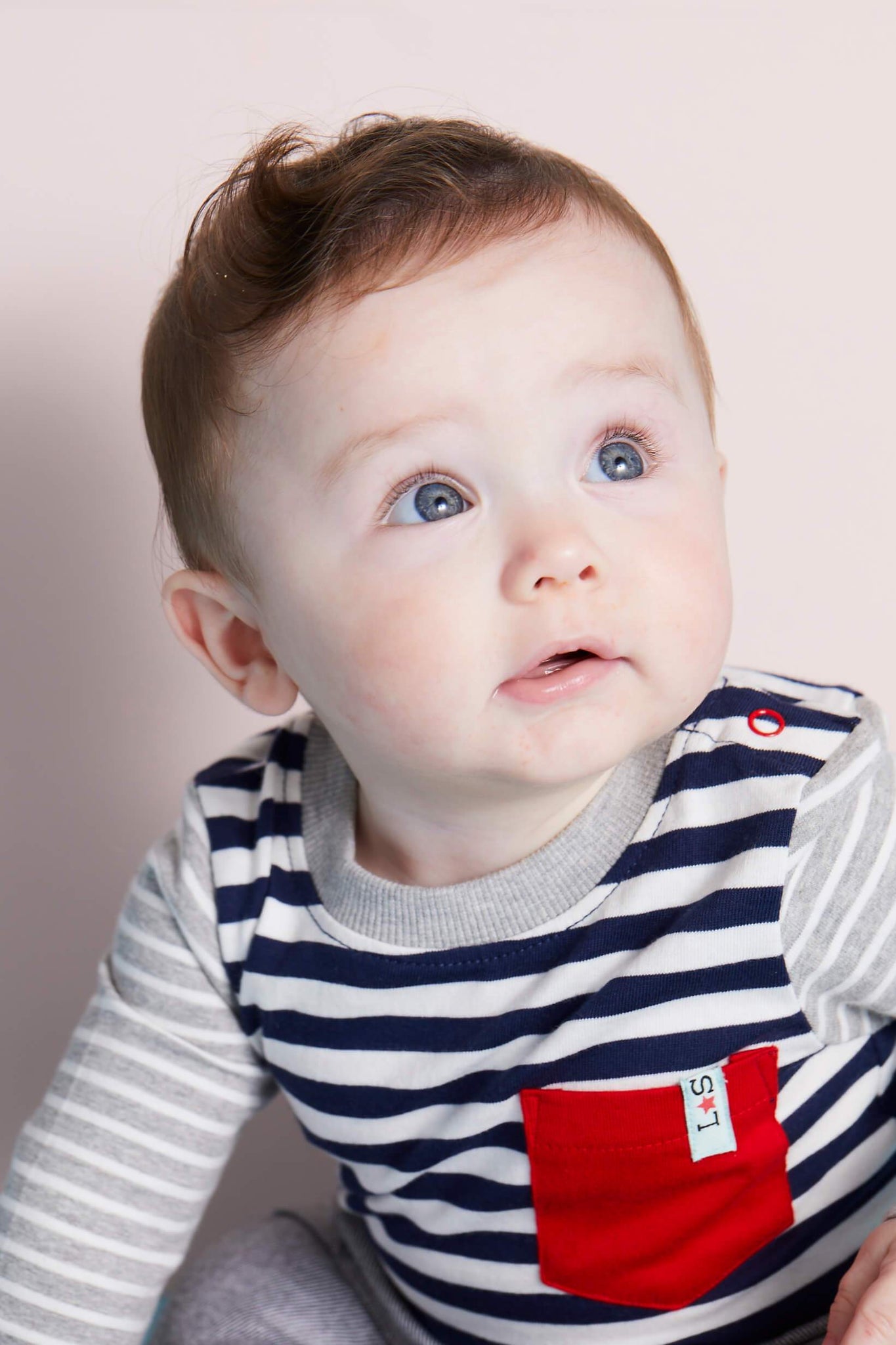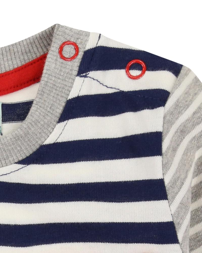 Mix sleeve top featuring our favourite jersey stripes this season. Pull on pocket trousers are made from our soft woven flannel, and have contrast stripe rib detailing to make a lovely outfit. Popper fastening to neck.