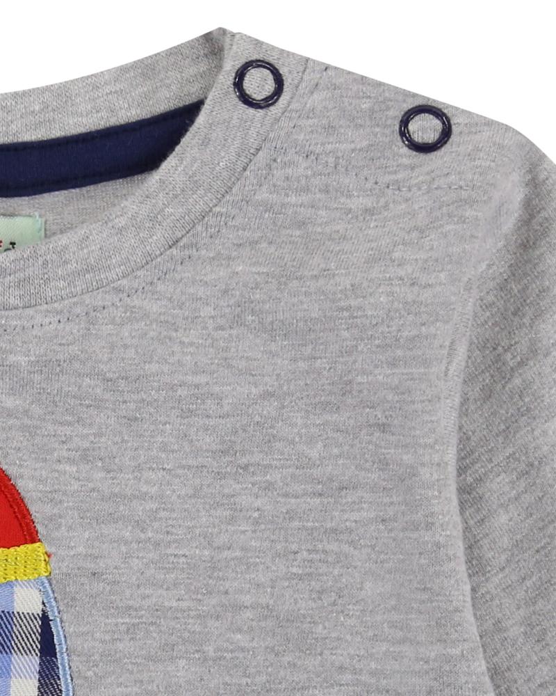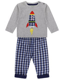 One of our best selling lines, this baby set is designed for versatile style this season. Soft grey jersey top with rocket applique and popper neck fastening. The co-ordinating trousers have navy jersey and knee patches to one side and woven check to reverse- 2 looks in one ! Designed for both playdates and parties , a lovely baby boys gift.