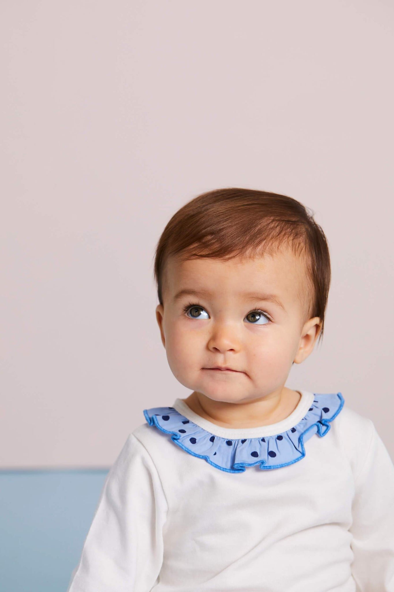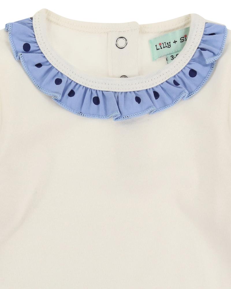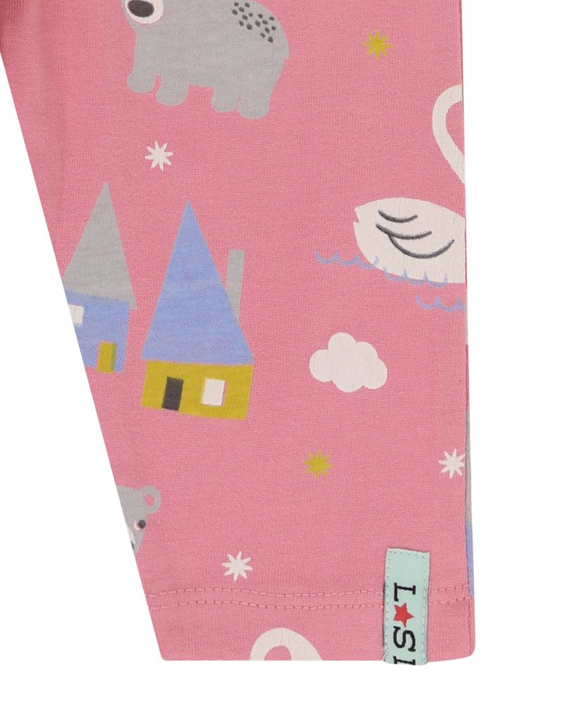Our new leggings print features whimsical swan and bears on soft cotton jersey. Ecru jersey top with sweet woven frill to neck completes the look. A lovely gift for baby girls.