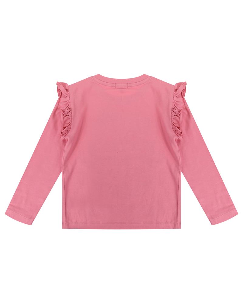 Made from premium jersey fabric, this embroidered top has a homespun appeal. The pink colourway with insert shoulder frills can be worn back with any skirt or legging this season.